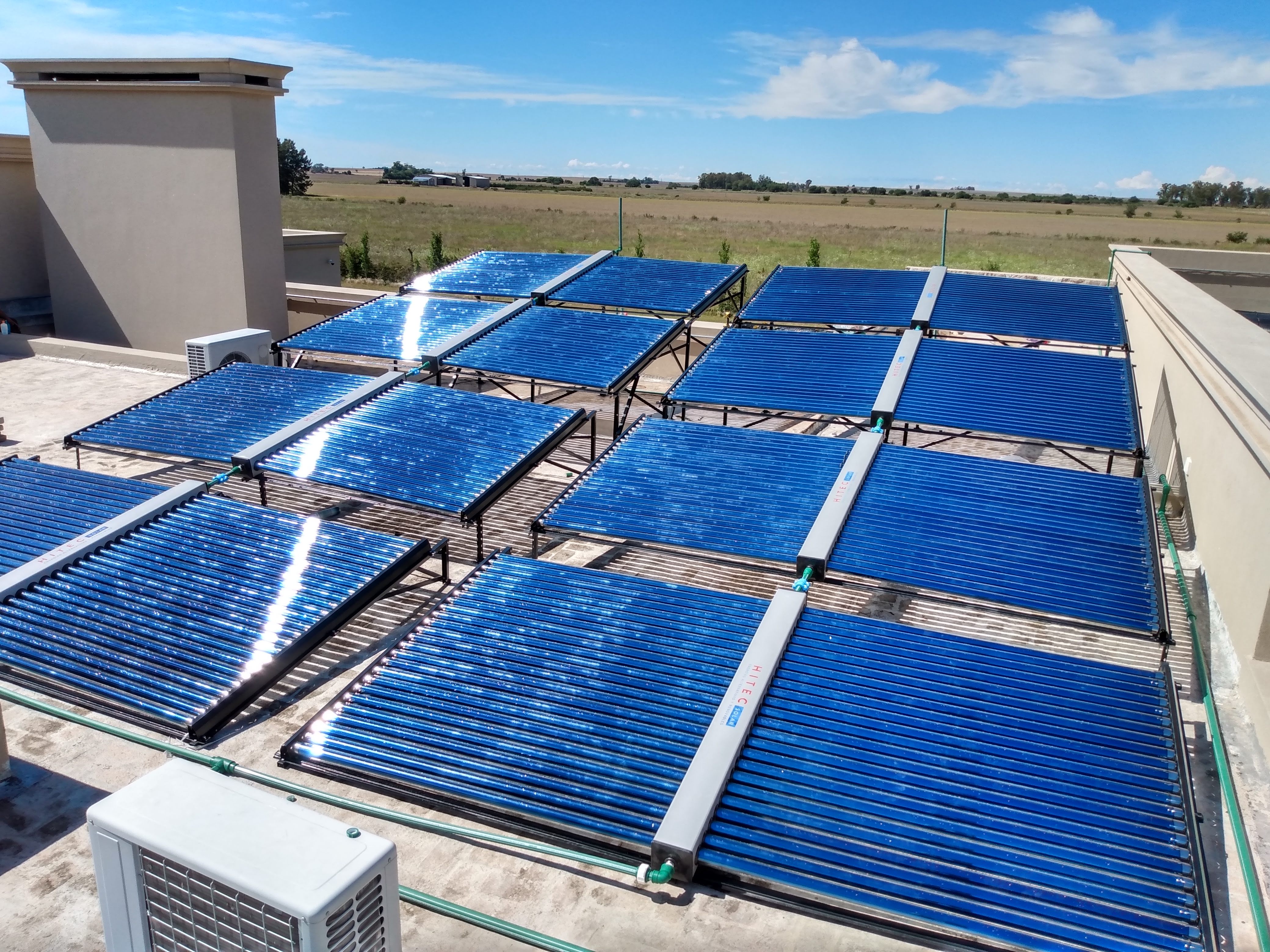 Sistema de tubo de vacio empleados para la produccion de agua caliente en gran cantidad, utilizados comunmente para climatizar piletas, loza radiante o sistema de agua caliente sanitaria de gran porte